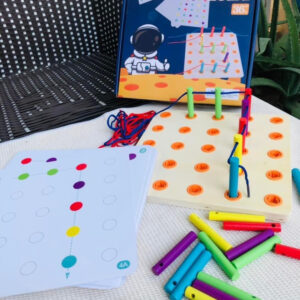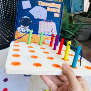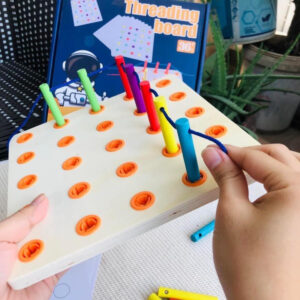 Đồ chơi “Luồn dây tư duy” là một món đồ chơi giáo dục sáng tạo dành cho trẻ em, giúp các bé phát triển kỹ năng vận động tinh, khả năng phối hợp tay và mắt, đồng thời rèn luyện tính kiên trì và tư duy logic. Đồ chơi được thiết kế đơn giản nhưng độc đáo với các lỗ nhỏ trên bảng gỗ và các sợi dây màu sắc khác nhau.