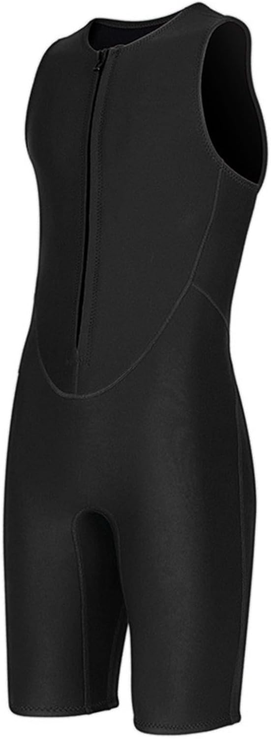 [Comfortable Fit] The swimsuit contours to your body with stretchable neoprene that resists water absorption, ensuring a snug and comfortable fit. the sleeveless cut allows for unrestricted shoulder mobility while maintaining core warmth, so you can move freely and stay warm in the water. [Easy Wear & Flexibility] Featuring a convenient front zipper, this sleeveless wetsuit is easy to put on and take off while offering maximum flexibility. its form-fitting design enhances mobility for swimming, snorkeling, and surfing, ensuring you stay comfortable and agile in the water. [Warmth & Protection] This 2mm neoprene shorty wetsuit is designed to keep you warm in cold water while providing excellent protection against marine life stings and harmful sun exposure. the stretchy nylon-neoprene blend ensures full-body coverage without restricting your movement, making it ideal for extended water activities. [Durable & Chafe-free] Crafted from neoprene, this wetsuit withstands saltwater and frequent use without losing its shape. the reinforced stitching and soft interior lining prevent chafing during extended wear, ensuring long-lasting comfort and durability for all your water sports needs. [Versatile Water Sports] Designed for a variety of water sports, this dive suit provides exceptional thermal insulation during scuba diving, paddleboarding, or kayaking. the 2mm thickness strikes the perfect balance between warmth and lightweight flexibility, making it suitable for all your aquatic adventures. Spec: Item Type: 2mm Sleeveless Diving Wetsuit Package List: 1 x Wetsuit How To Use: