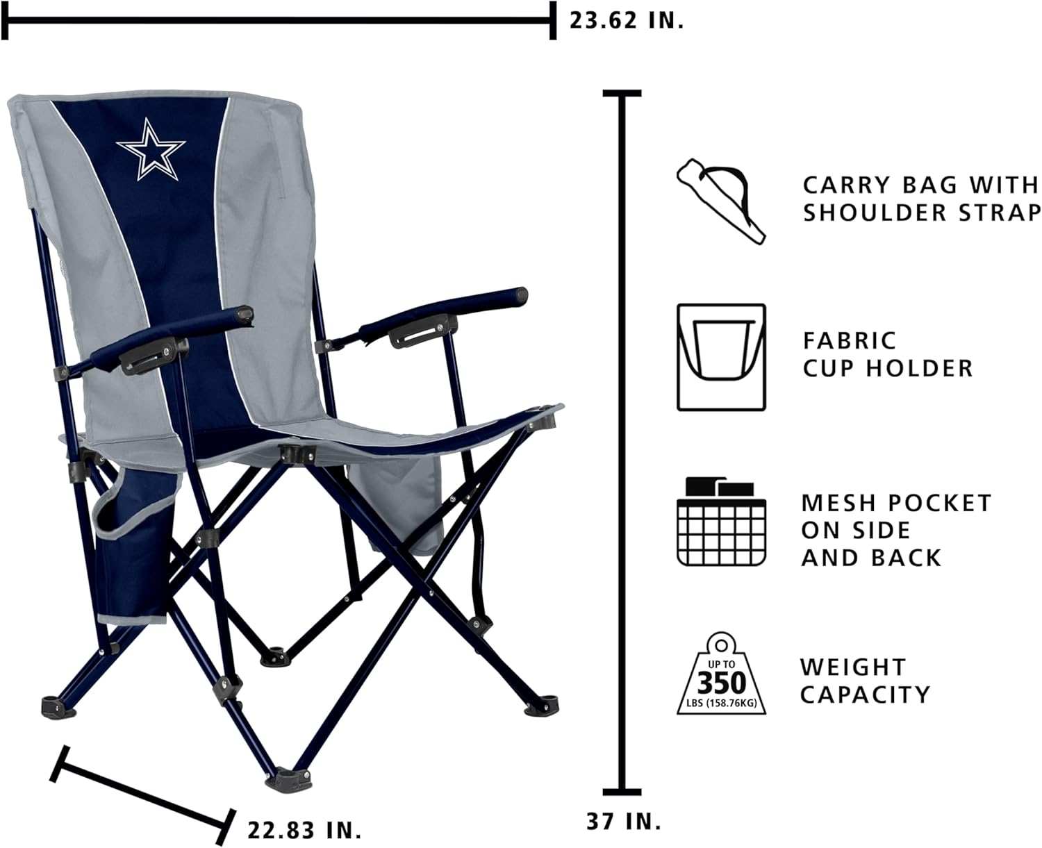 Show Off Your Team Spirit With This Officially Licensed Big Boy Chair, Perfect For Tailgating, Camping, Picnics, Or Any Outdoor Event. Crafted From A Sturdy Powder-Coated Steel Frame With Double Layered Polyester, It Features Team Logos Screen Printed On The Front And Back Of The Headrest Plus A Matching Carry Bag With Shoulder Strap. The Heavy-Duty Construction Supports Up To 350 Lbs While Dual Oversized Cup Holders, A Zippered Storage Pouch, And A Mesh Back Pocket Keep Your Essentials Within Reach. Whether You're Cheering From The Parking Lot Or Relaxing At The Campsite, This Big Boy Chair Combines Comfort, Durability, And Team Pride In One Essential Fan Accessory.