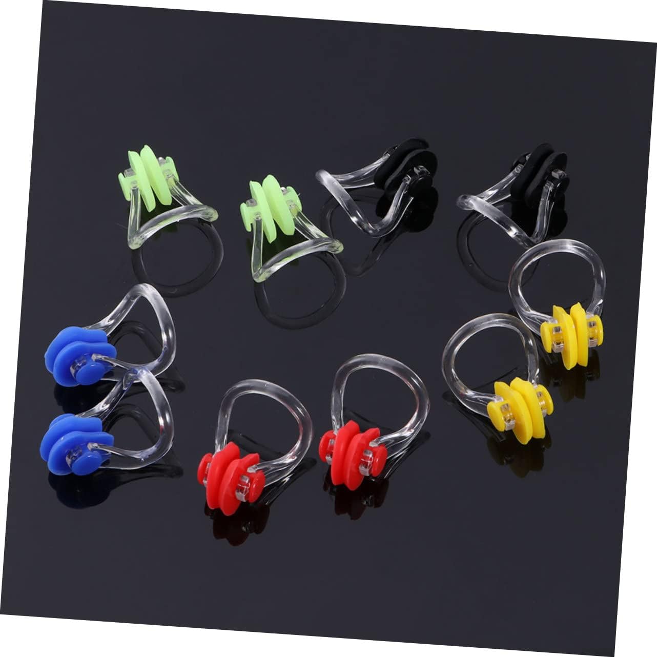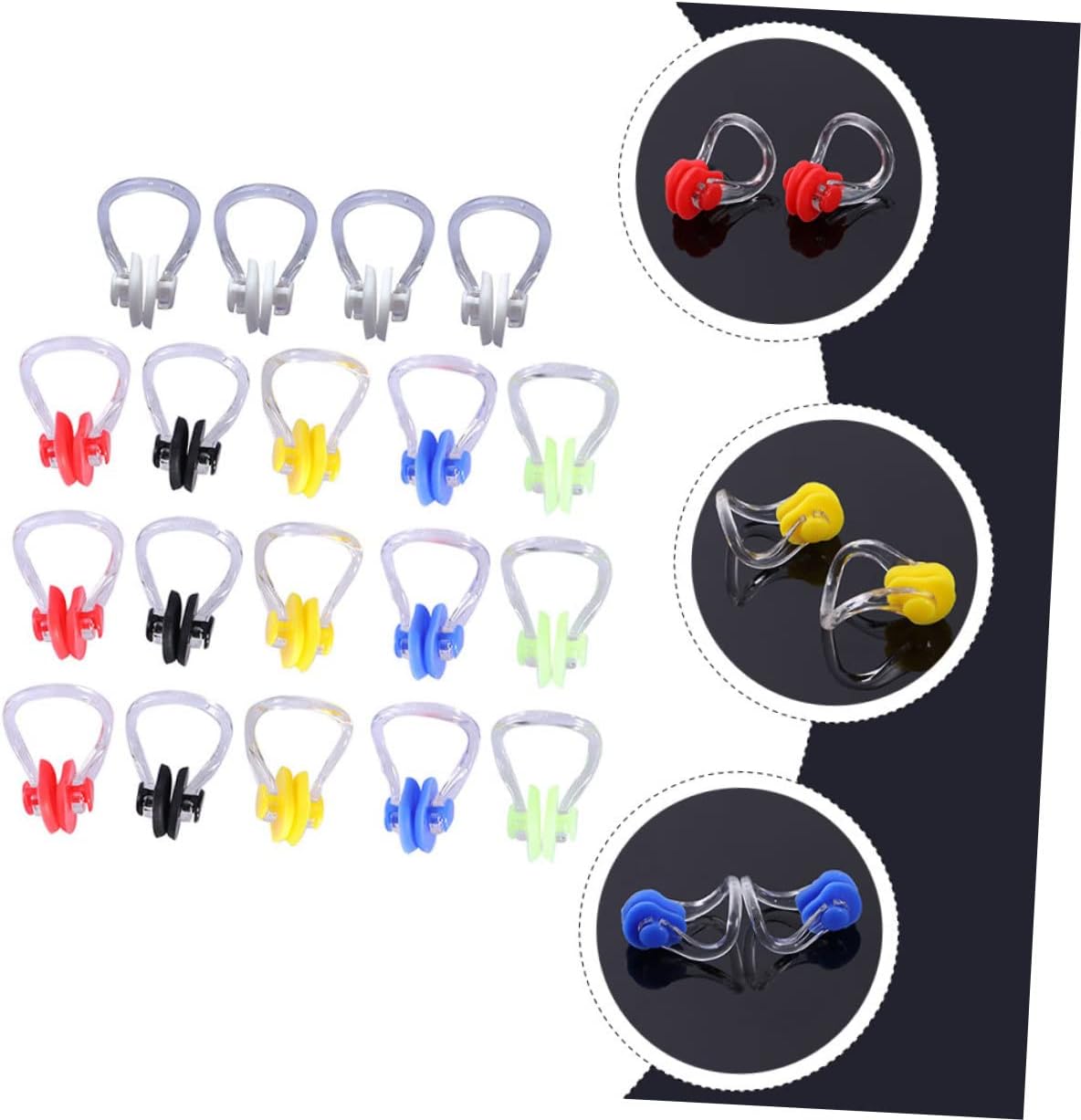 Package List 20 x nose clips Features - Size: About 3.70X2.70X0.30cm/1.45X1.06X0.12inch Swimming Nose Clip. - Material: Silicone Creative Swimming Nose Clamp. - ColorAssorted Color Silicone Nose Clip -The workmanship of this product is , and you will have a good experience in using it Wear-resistant Nose Plugs. -It is lightweight and compact size for easy and convenient to carry and store Nose Clip. -It is made of and , which can be used for a long time Swimming Supplies. - for swimming, shower, water skiing, canoeing and other sports Anti- Nose Clip. -The ergonomic nose clips are comfortable to wear and will not harm your skin Nose Protector.Goods InformationAnti- Nose Clip Supple and comfortable, it can fit you nose and do no hurt to your skin.Nose Plugs Also can be a great present for your friends who like swimming.Convenient Nose Clips Suitable for swimming, surfing, shower, water skiing, canoeing and other water sports.Nose Protection Clamp Made of material for long time and durable use